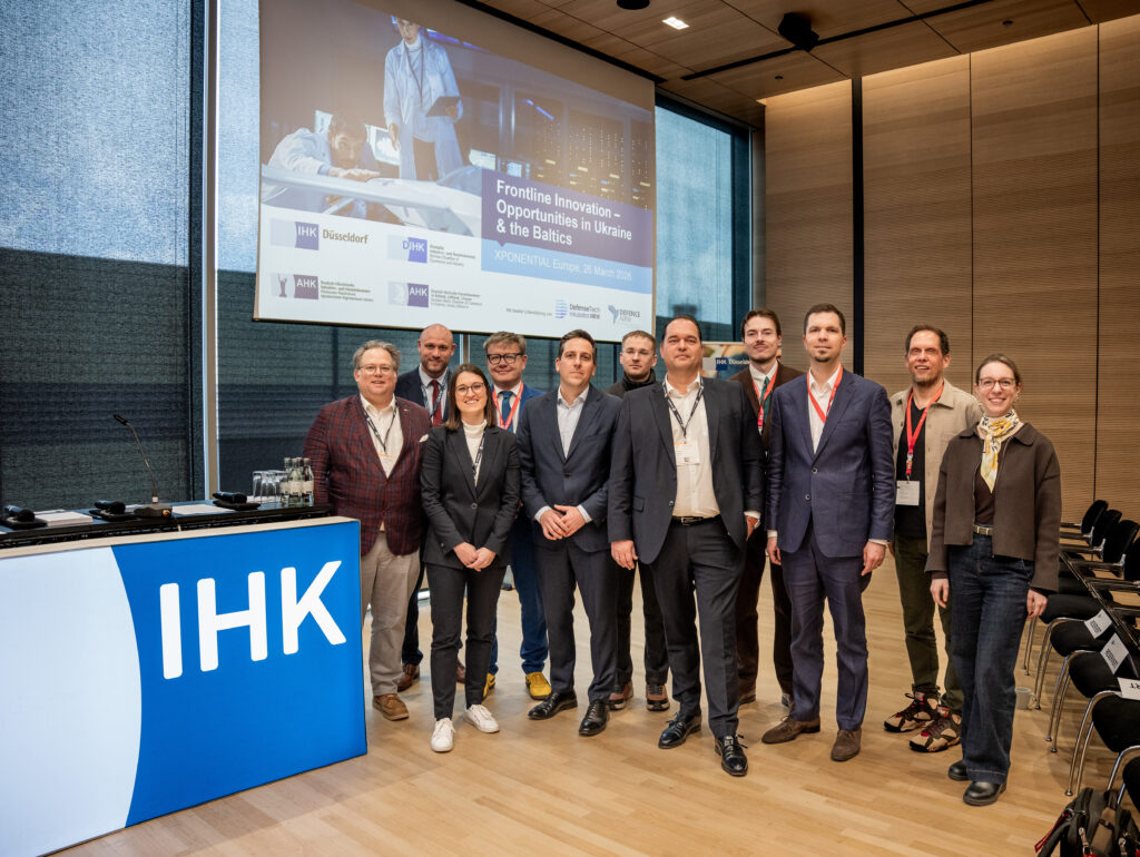 Die Xponential Europe brummt, doch auf der Messe in Düsseldorf geht es um mehr als Technik. Es geht um Innovation unter Druck – um Geschwindigkeit, die Leben schützen soll. Und um Chancen für Unternehmen. „Frontline Innovation – Opportunities in Ukraine & the Baltics“ heißt die Session, zu der die IHK Düsseldorf mit Partnern der Auslandshandelskammern eingeladen hat. Der Titel trifft den Kern: Wer heute Sicherheits- und Verteidigungstechnologien entwickelt, arbeitet in einem Ausnahmezustand.