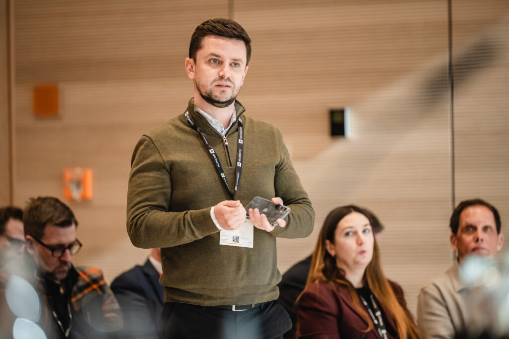 Florian Schröder, CEO der Deutsch-Baltischen Auslandshandelskammer, führt diesen Punkt weiter aus. Er stellt die Baltic Defence Line vor – ein gemeinsames Projekt von Estland, Lettland und Litauen, dem „magischen Dreieck“, so nennt er es. Es geht darum, die östlichen Grenzen zu Russland und Belarus zu stärken. Dazu dient auch der Baltic Drone Wall, ein Schutzwall von Norwegen bis Polen. Moderne Drohnen und Abwehrsysteme spielen dabei eine zentrale Rolle. Diese Technologien prägen auch die Use-Case-Pitches der ukrainischen und baltischen Unternehmen, die sich bei der Veranstaltung vorstellen.
