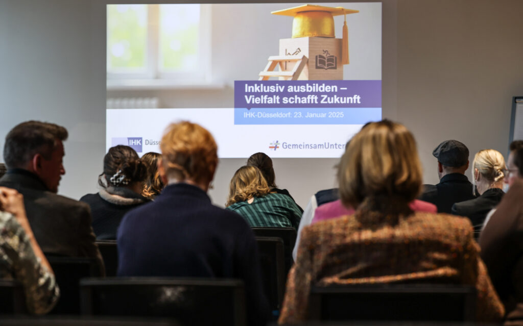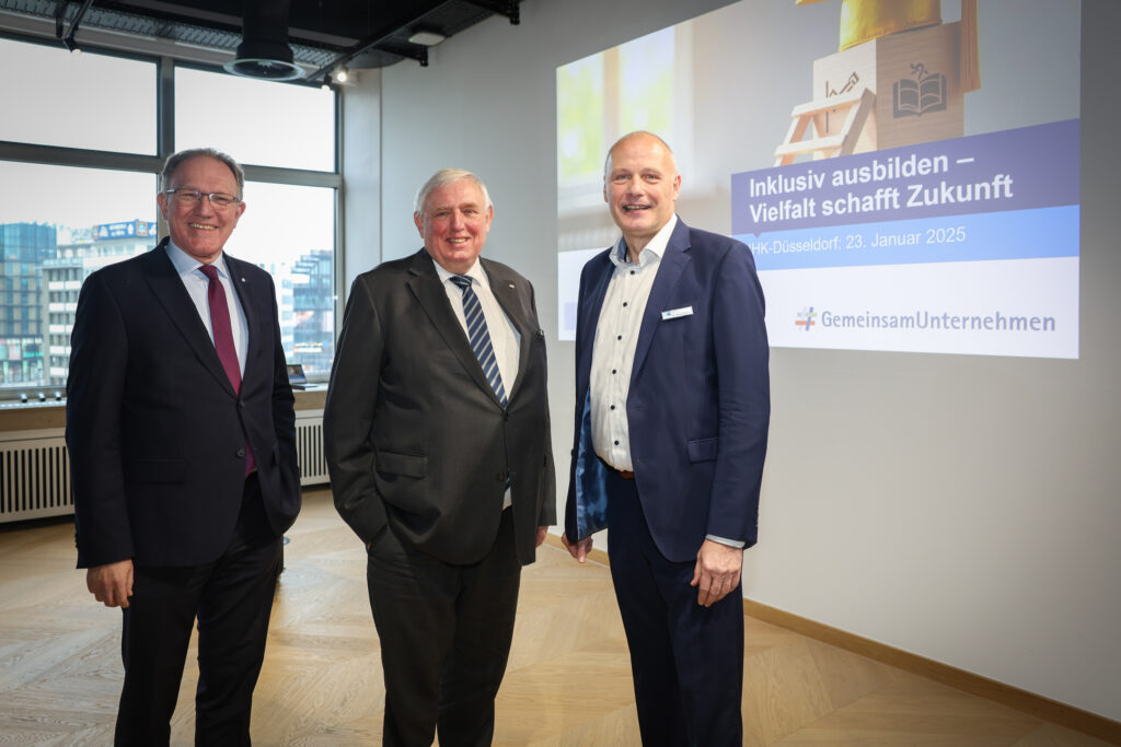 „Wir als IHK Düsseldorf legen schon lange einen Schwerpunkt auf das Thema Inklusion und arbeiten eng mit der Bundesagentur für Arbeit und Integrationsfachkräften zusammen, um allen Menschen eine Partizipation am Arbeitsmarkt und damit an der Gesellschaft zu ermöglichen“, sagte Berghausen. Da sich der Fachkräftemangel aufgrund des demographischen Wandels eher verschärfen wird, müssen die Unternehmen ihren Blick weiten, wenn es um die Suche nach geeigneten Mitarbeiterinnen und Mitarbeitern geht. Bei der IHK, die ebenso wie Beratungsstellen, Integrationsfachdienste und Inklusionsämter zu den Einheitlichen Ansprechstellen für Arbeitgeber (EAA) zählt, finden diese Fachleute, die sie auch über die diversen staatlichen Fördermöglichkeiten aufklären. „Inklusive Ausbildung ist kein Randthema, sondern die Zukunft“, erklärte der IHK-Hauptgeschäftsführer.