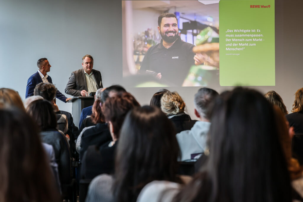 Wie sinnvoll es ist, bei der Suche nach Personal die große und oft ungesehene Gruppe der behinderten Menschen mit einzubeziehen, zeigt seit vielen Jahren David Hegemann, Inhaber von fünf Rewe-Märkten in Düsseldorf und Träger des Wirtschaftspreises für Inklusion 2024. Gemeinsam mit Roderich Dörner, HR-Partner Inklusion bei Rewe-West, erläuterte er bei der Veranstaltung der IHK, wie loyal, motiviert und verlässlich seine mittlerweile zehn Mitarbeitenden und zwei Azubis in der Fachpraktikerausbildung mit Behinderung sind und dass der Umgang auf Augenhöhe sowohl auf das Team als auch die Kunden ausstrahle. „Es schafft eine Form von Wertschätzung und Zusammenhalt. Viele Kunden kommen extra in meine Filialen, obwohl sie weiter weg wohnen, weil sie explizit unseren Ansatz unterstützen.“