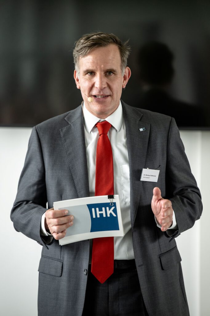 Dr. Nikolaus Pfaffenholz, Geschäftsführer Unternehmensservice bei der IHK Düsseldorf, fasste die Veranstaltung zusammen: „Für viele Mittelständler ist der Verteidigungssektor ein neues Terrain. Die Velberter Sicherheitsgespräche haben gezeigt, dass es sich lohnt, dieses Feld differenziert zu betrachten. Wer sich gut vorbereitet, klare Stärken herausarbeitet und Netzwerke nutzt, kann sich auch in diesem anspruchsvollen Markt erfolgreich positionieren.“