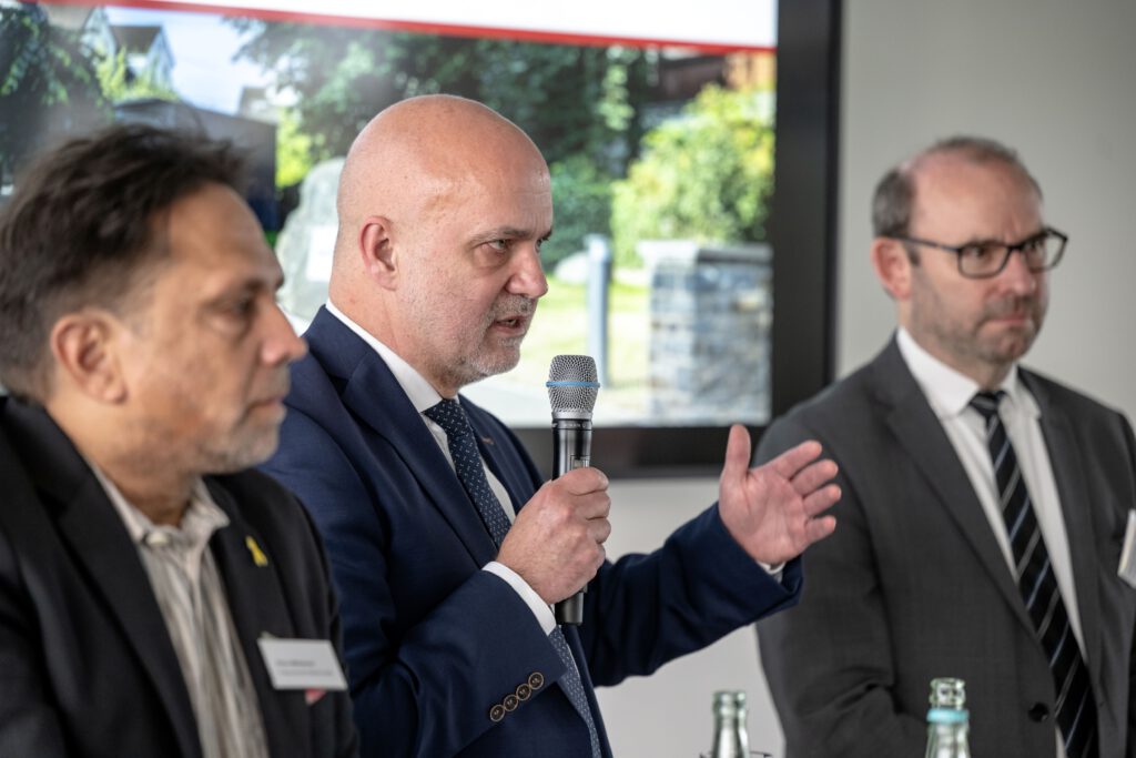 Begrüßt wurden die Gäste von Dirk Lukrafka, Bürgermeister der Stadt Velbert, Michael Beck, Bürgermeister der Stadt Heiligenhaus, sowie Julia Niederdrenk, Vizepräsidentin der IHK Düsseldorf. Sie betonte: „Die aktuellen Beschaffungsprozesse sind nicht nur eine sicherheitspolitische Notwendigkeit, sondern auch eine wirtschaftliche Chance für viele Unternehmen aus unserer Region. Gerade der Mittelstand kann mit seiner Innovationskraft und Flexibilität einen wichtigen Beitrag leisten.“