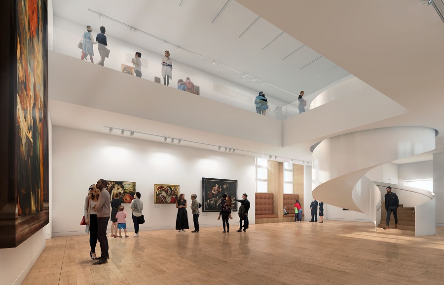 „Das Publikum wird dann die Sammlung in einem offenen und lichten Raumgefüge erleben können. Neue Treppen und Aufzüge, die Freilegung von Fenstern zum Ehrenhof – all dies wird den Rundgang durch das Museum verbessern“, verrät Felix Krämer. Wie der neue Kunstpalast aussehen soll, zeigt ein Musterraum, der mitten in der Baustelle angelegt worden ist: Das Museum erhält einen hellen Holzboden, die Wände werden weiß. Viele bislang verhängte Fenster sollen geöffnet werden, um Tageslicht hereinzulassen.